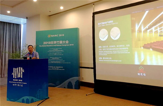 薛董以《竹建筑材料及其在城鎮(zhèn)化過程中的應(yīng)用潛力》為題,圍繞中國工業(yè)化以來企業(yè)運(yùn)用現(xiàn)代工藝技術(shù)及設(shè)備研發(fā)新的竹材產(chǎn)品,闡述在我國城鎮(zhèn)化建設(shè)過程中竹材新產(chǎn)品在室內(nèi)外的運(yùn)用以及未來的巨大潛力,結(jié)合豐富的案例展示了中國竹材產(chǎn)品的應(yīng)用成果及竹材應(yīng)用的發(fā)展趨勢。薛董的演講得到了來自世界各地的科研院所、高校、企業(yè)界的100多位代表的廣泛關(guān)注。