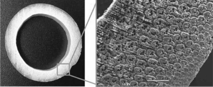 竹子是一種最典型天然的功能梯度材料。 從結(jié)構(gòu)上看,竹子是一種纖維增強復(fù)合材料,由兩種主要的組織組成: 作為增強作用的纖維(維管束) 和作為基體的薄壁細胞,這些纖維有很強的剛性,可以與鋼筋媲美。為了識別竹材莖稈中增強纖維的分布特性與竹稈抗彎剛度之間的關(guān)系,研究人員研究了竹材橫截面中的纖維分布。